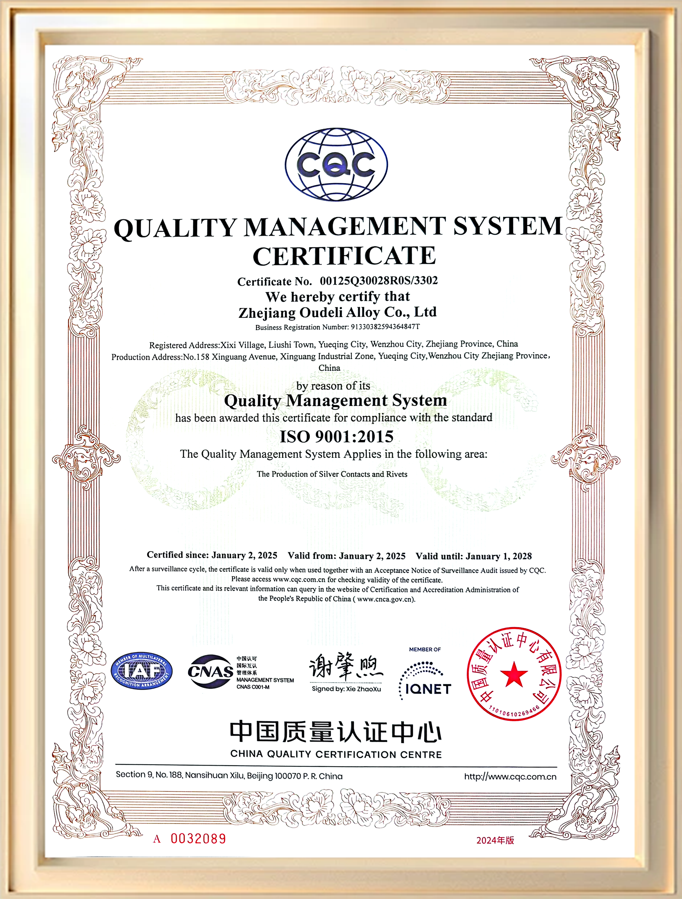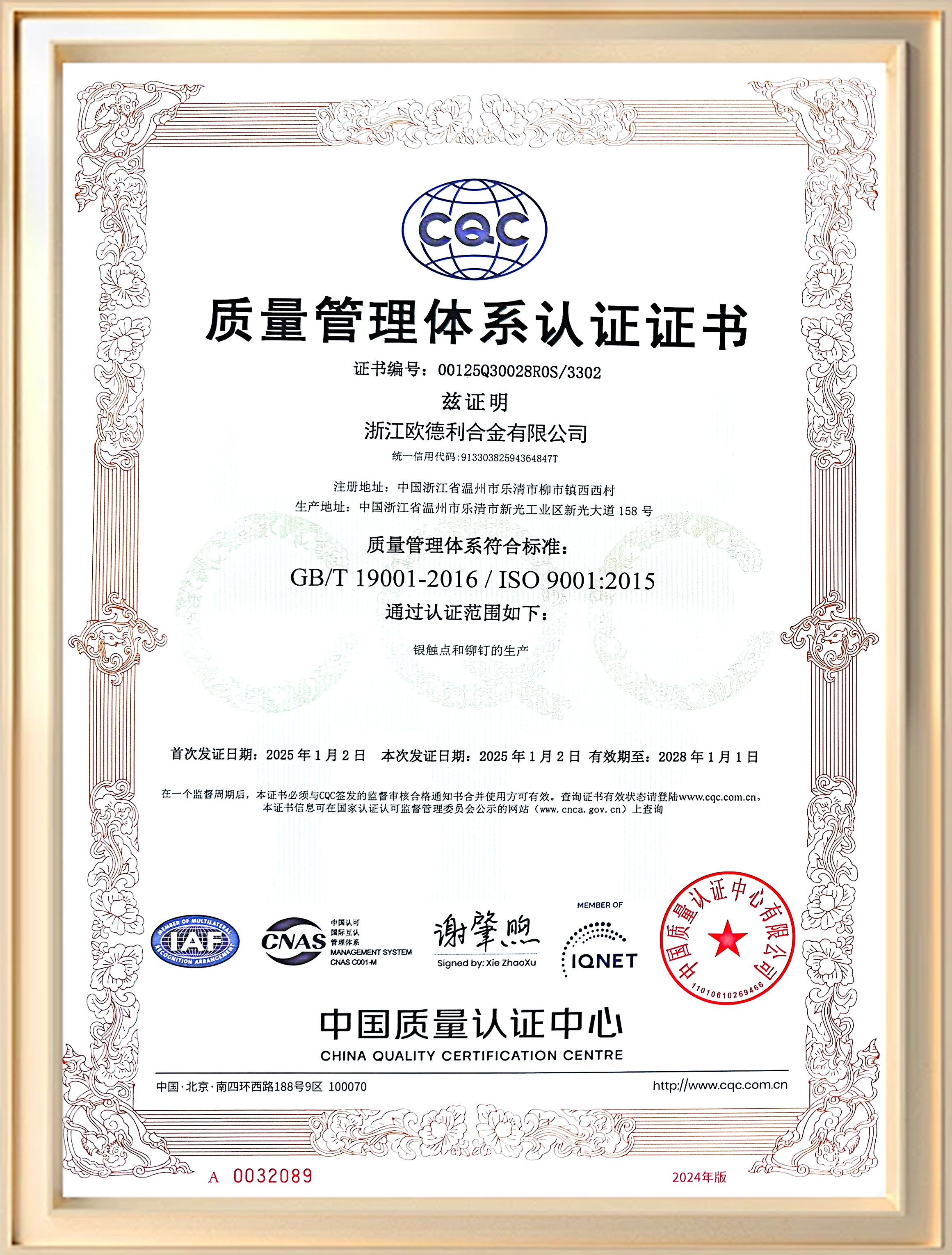 公司视质量为企业生命,通过ISO9001质量体系认证和有色金属合金产品行业认证,以行业高端制造标准为标杆,以“精准-可靠”之理念推进。